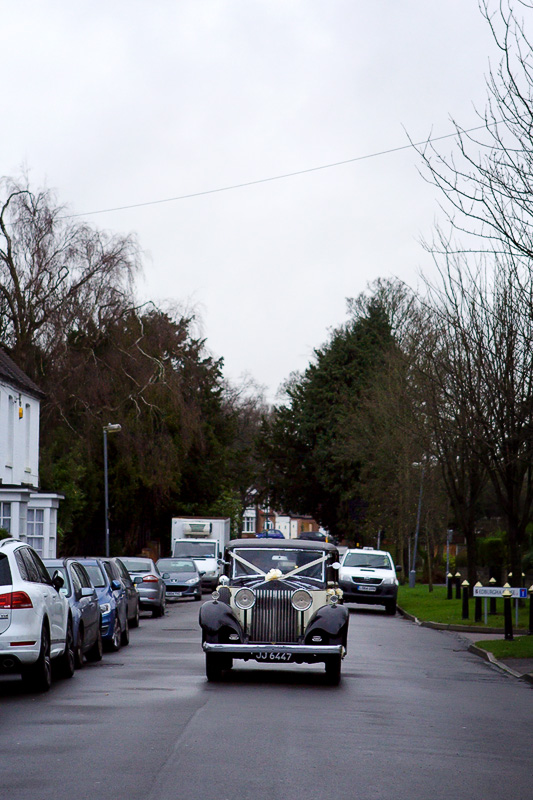 Prep was progressing in a sea of tranquility compared to some mornings & big smiles were the order of the day & soon it was time for me to nip round the corner to the church to meet up with Christopher & the guests. Again life was pretty calm & we were soon awaiting Victoria’s arrival in one of Celebration Wedding Cars delightful vintage Rolls Royces.