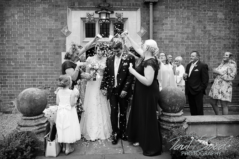 With the staff at Pendrell Hall working as efficiently as ever the guests were soon in place to greet Sally and Chris in a shower of confetti as they exited the hall for family photos.