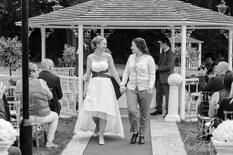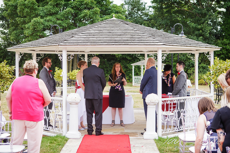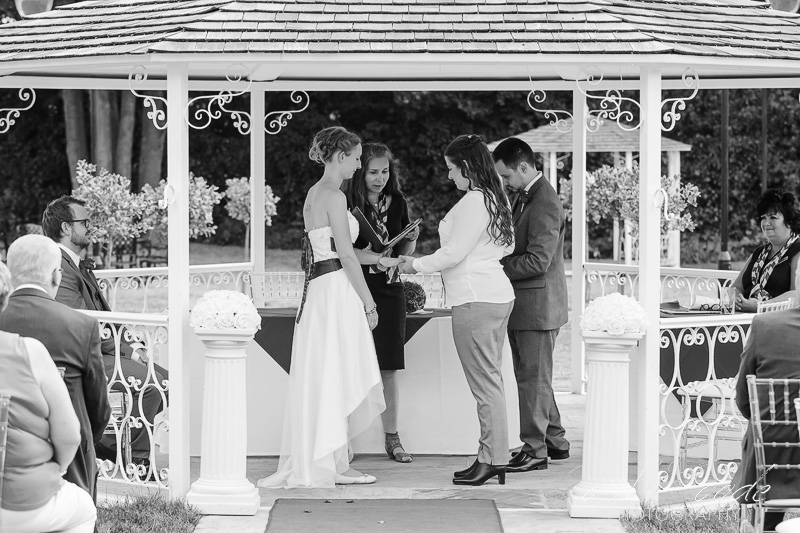 It was glorious weather when I met up with the wedding guests as they were taking their seats, out in the garden ready for the ceremony. Firstly, Natalie and her father made their way into the gardens along the red carpet, then shortly afterwards Emma and her father followed. Once they had arrived at the bandstand the Wolverhampton Registrar conducted a lovely ceremony which was thoroughly enjoyed by all.