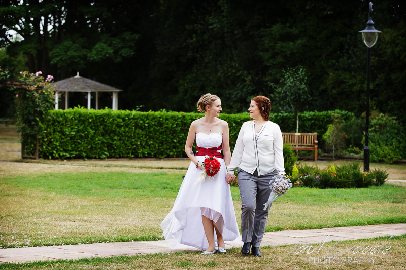 Emma and Natalie’s wedding venue was the Ramada Park Hall Hotel in Wolverhampton. The hotel is a luxurious Grade 11 listed Georgian Mansion set in seven acres of beautiful gardens which made an amazing setting for Emma and Natalie’s outdoor ceremony.