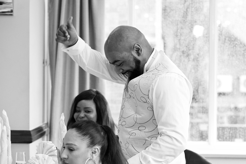After dragging the guys back inside we were soon heading down for a very lively ceremony followed by a mad dash round the grounds for photos, including a photo bombing swan before the forecast rain hit us. Hit us it certainly did & so the Library made a welcome retreat for the family photos before we were called through the wedding breakfast & very entertaining speeches!